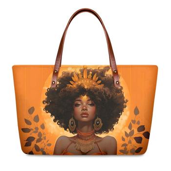 Borsa Tote all'Ingrosso, Borsa Economica, Borse da Donna, Borsa con Stampa Personalizzata Ragazza Africana, Borse di Lusso