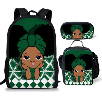 Nuovo Design Zaino per Adolescenti Nero con Stampa Artistica Ragazza Africana Grande Capacità Zaino Verde per Ragazze e Ragazzi