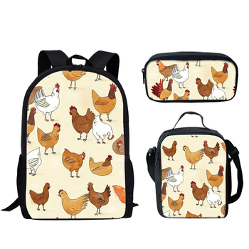 Set di 3 Zaini Scolastici per Bambini con Stampa di Pulcini, Personalizzabili, per Dropshipping